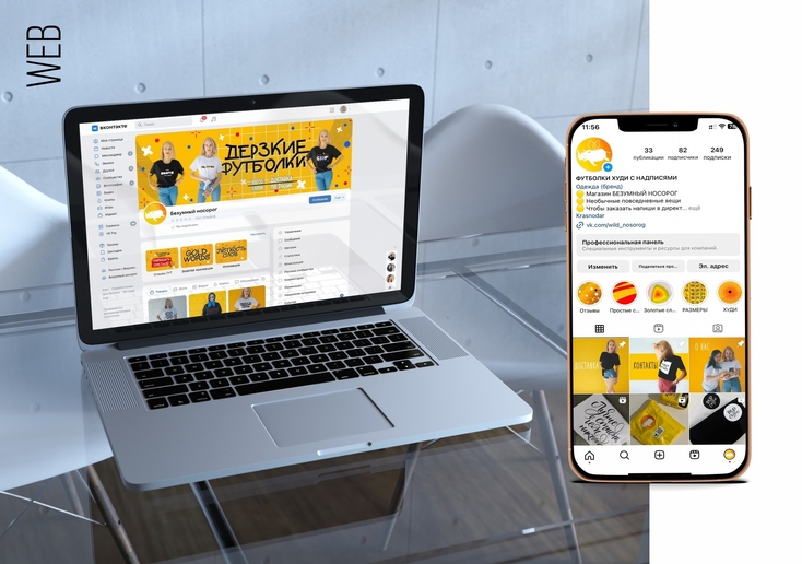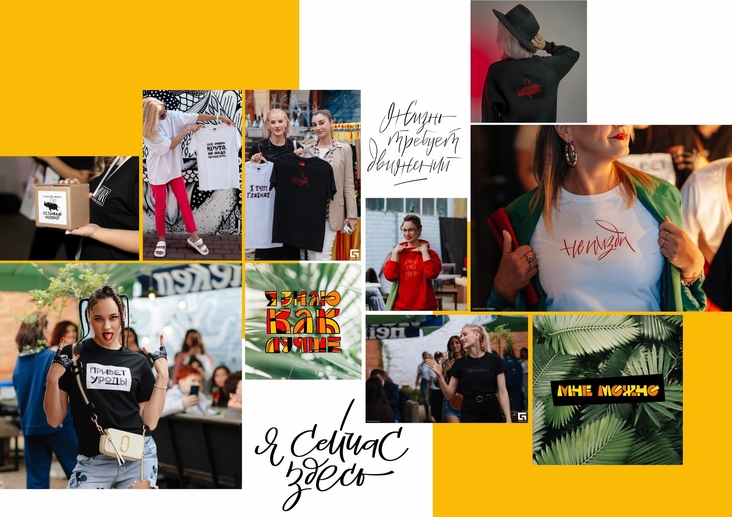 В этом проекте показана полная упаковка онлайн-магазина футболок: фирменный стиль, леттеринг-логотип, принты, соцсети, полиграфия.